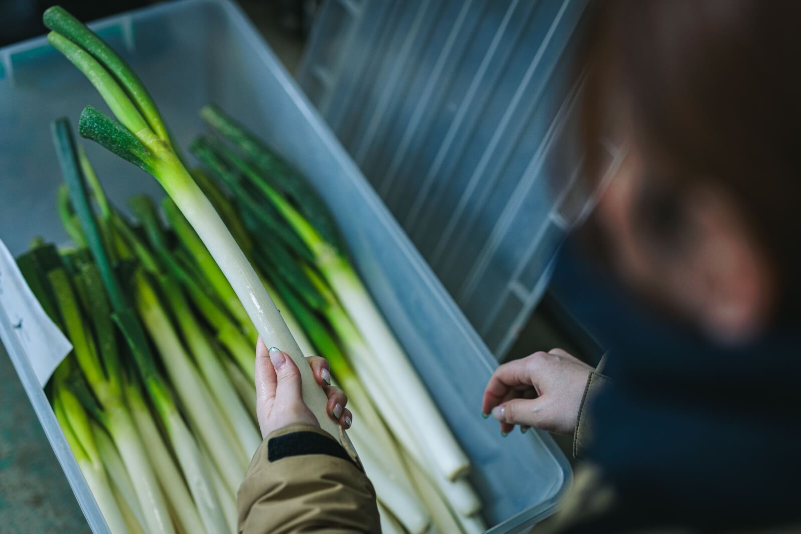 栽培されるネギ。太さがあり甘味も強く、この地でしか獲ることができないネギといえる。