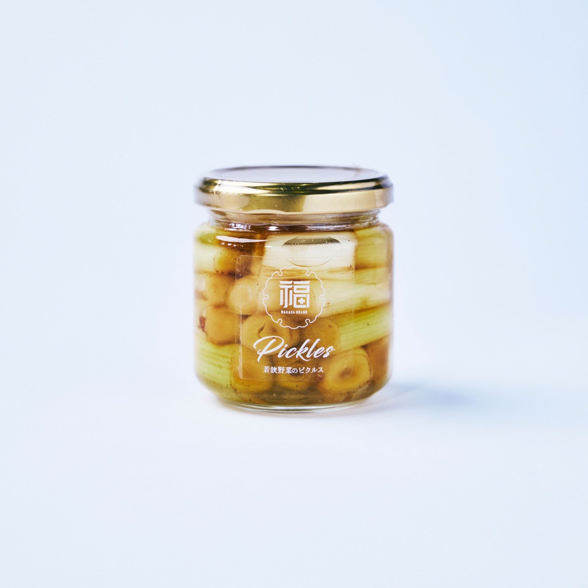 採れたての福井県産白ネギを香ばしく焼き、甘みをぐっと引き出してから仕立てた「若狭野菜のピクルス 白ネギ」。瑞々しさの中に広がる柔らかな甘みとほんのりとした香ばしさ。若狭の畑の恵みを、ひと瓶に閉じ込めました。